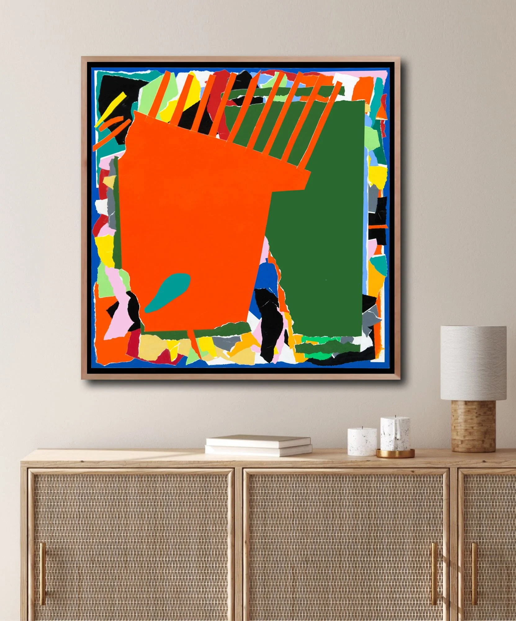 Collage #2 • Acrylic paint with mixed media, torn and cut painted paper on wood panel • 30” x 30” x 1.5” without frame • February 2017