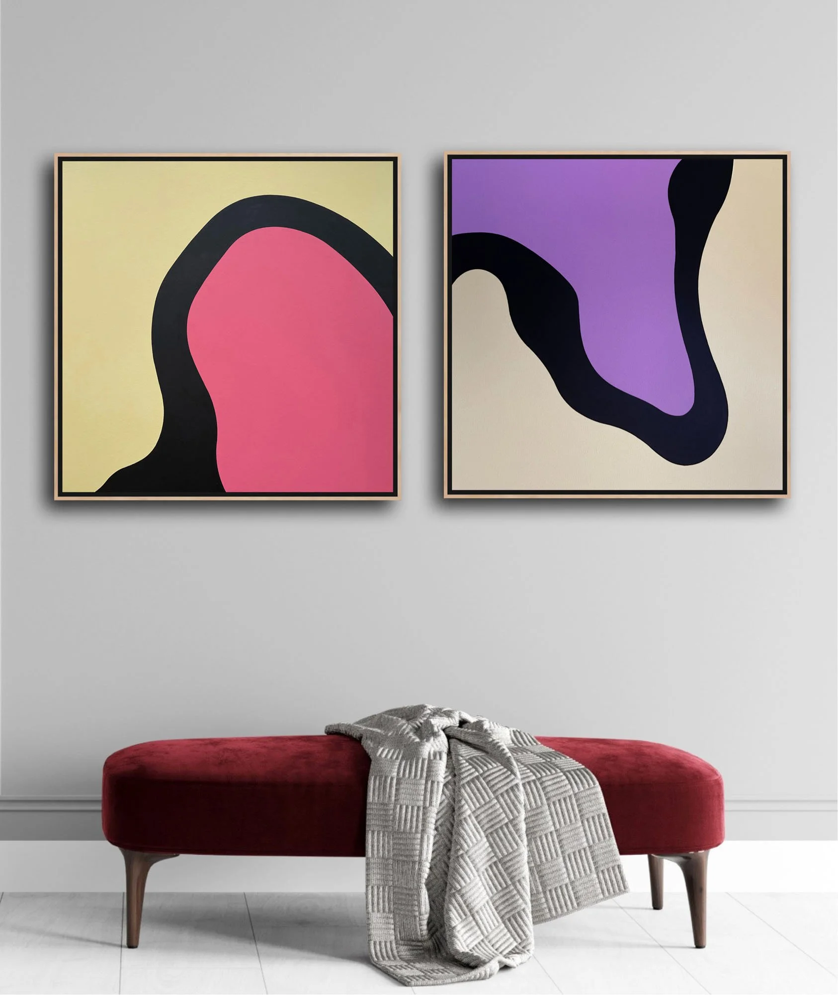 Freeform (Threshold) Shape Closeup 3092 (left and •• Freeform (Threshold) Shape Closeup 3308 (right) •• Both painted with acrylic paint • 30” x 30” • April 2022