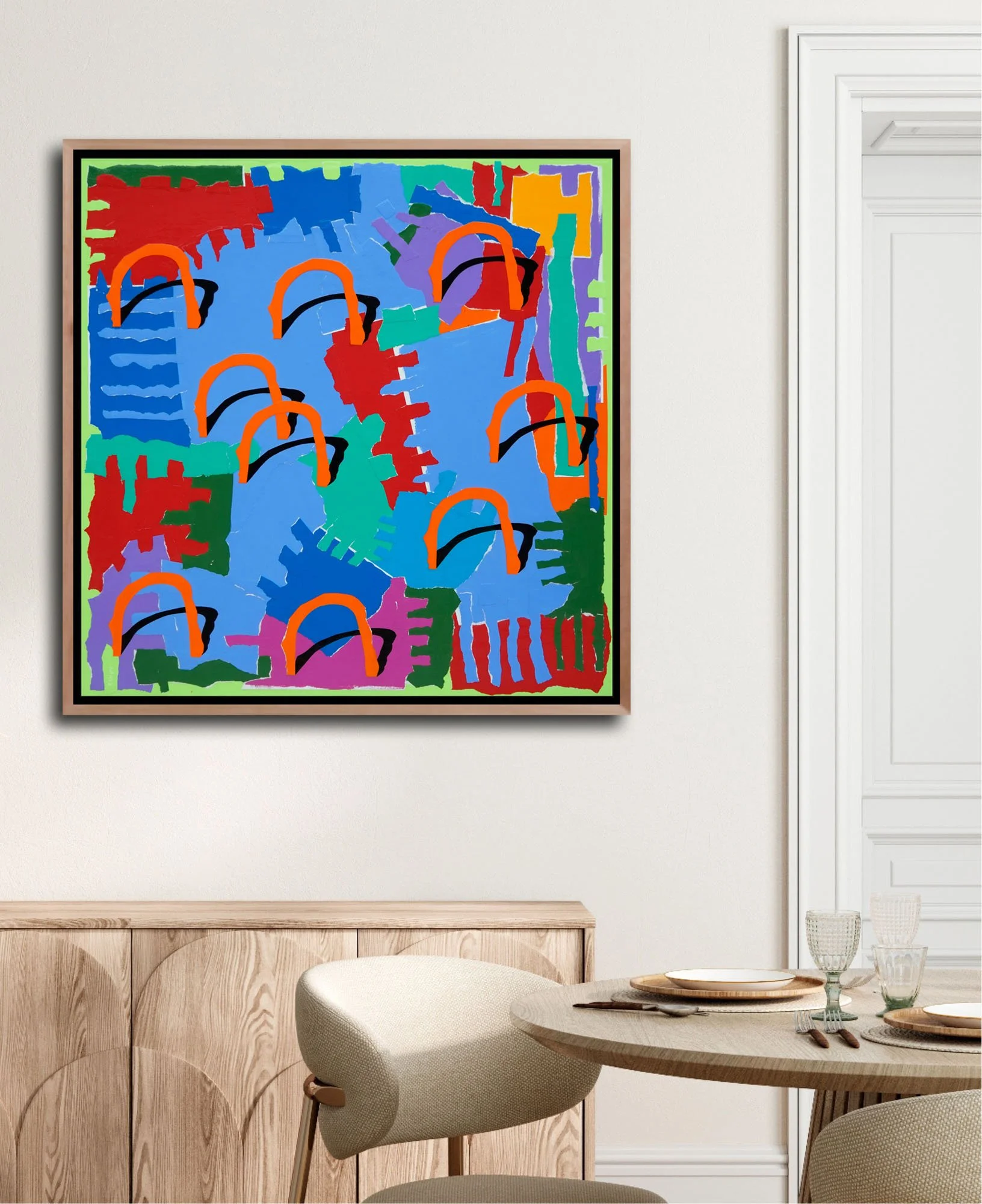 Collage #3 Arc • Acrylic paint with mixed media, torn & cut painted paper on wood panel • 30” x 30” x 1.5” without frame • April 2017
