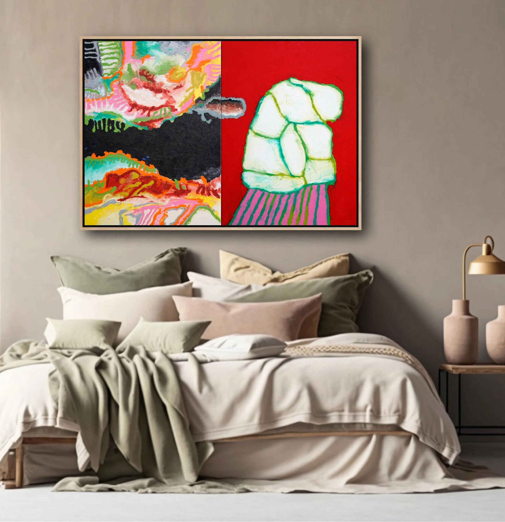 Diptych No. 1 • Oil Stick on rigid foam board • 2 panels: 24” x 33” each, 48” x 33” total • April 2019