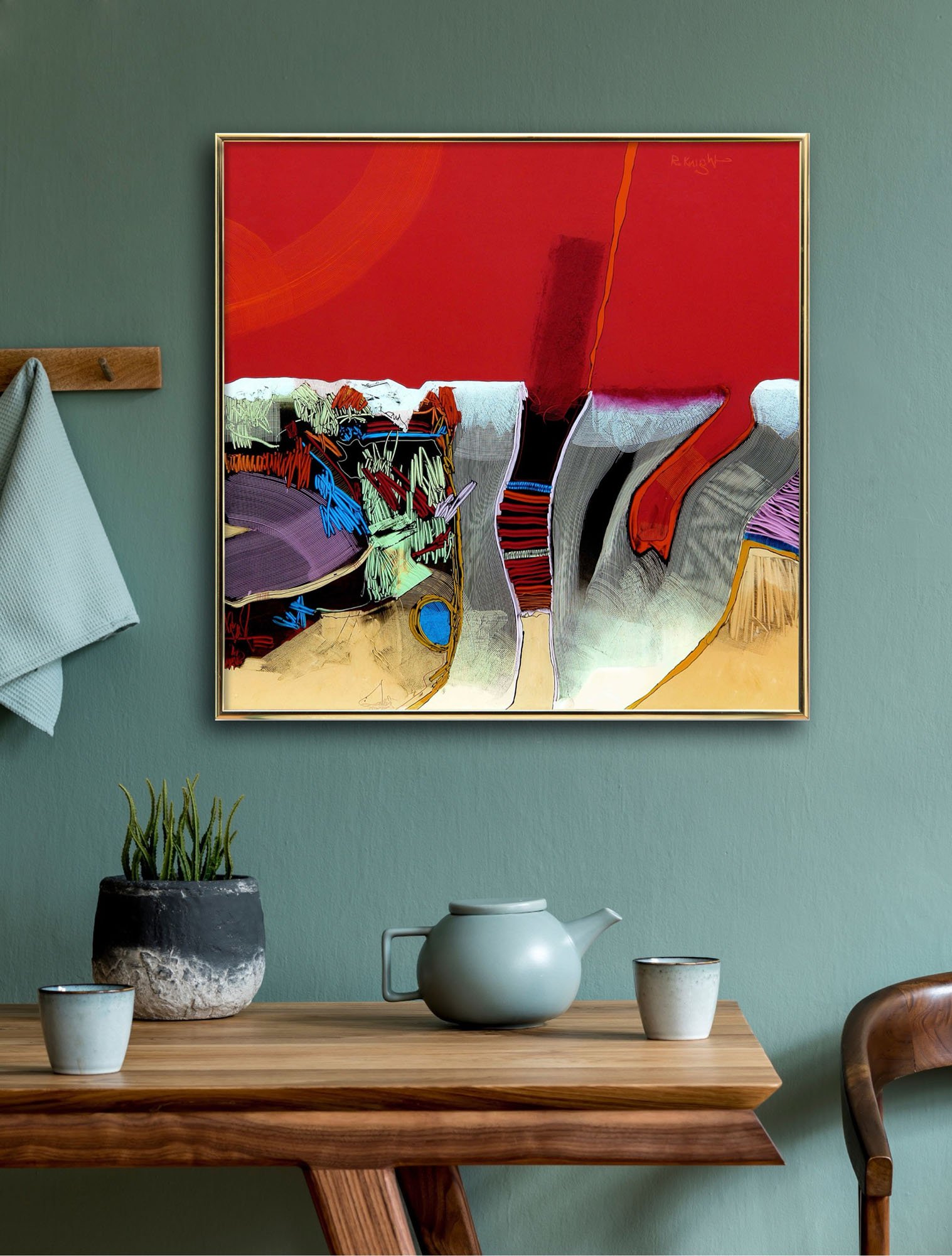 Keyhole Red 1450 • Acrylic on Plexiglas (reverse painting, paint on backside) • 34” x 34” including handmade frame • 1996