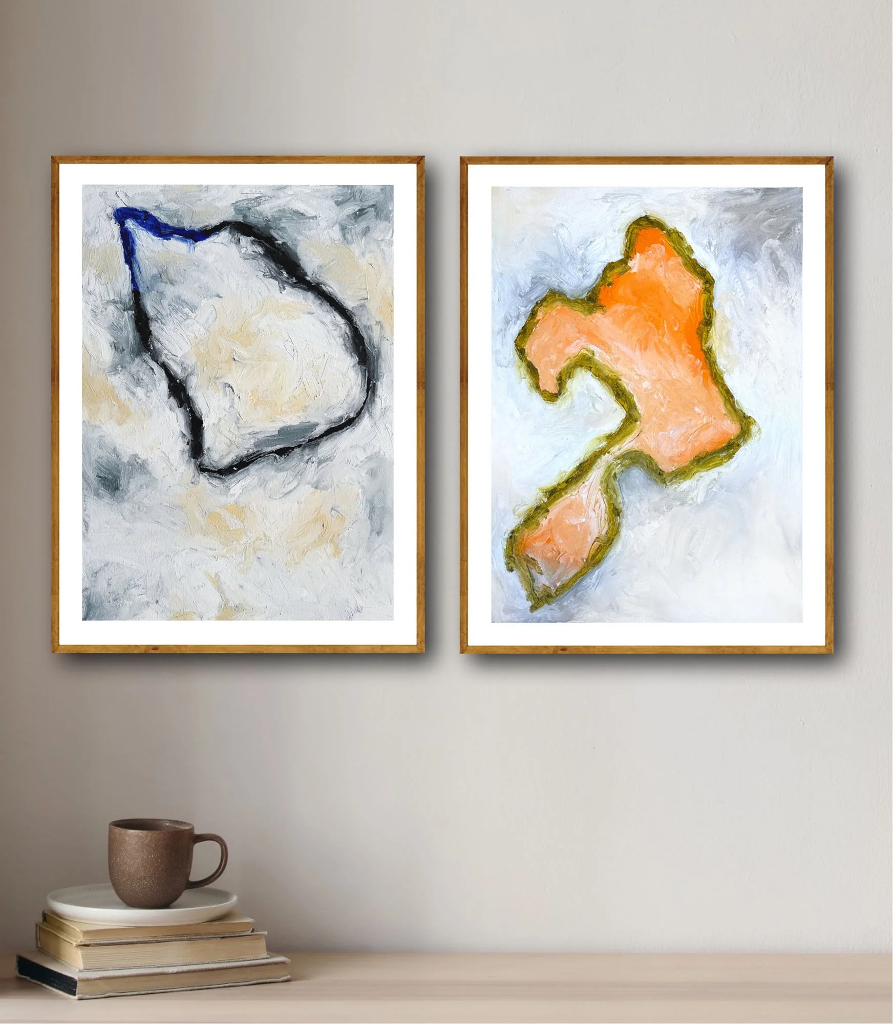Fragment of Falling Shape 0973 (left) & 1469 (right) • Oil sticks on paper • 13” x 18” (no frame) • December 2023 & 2024