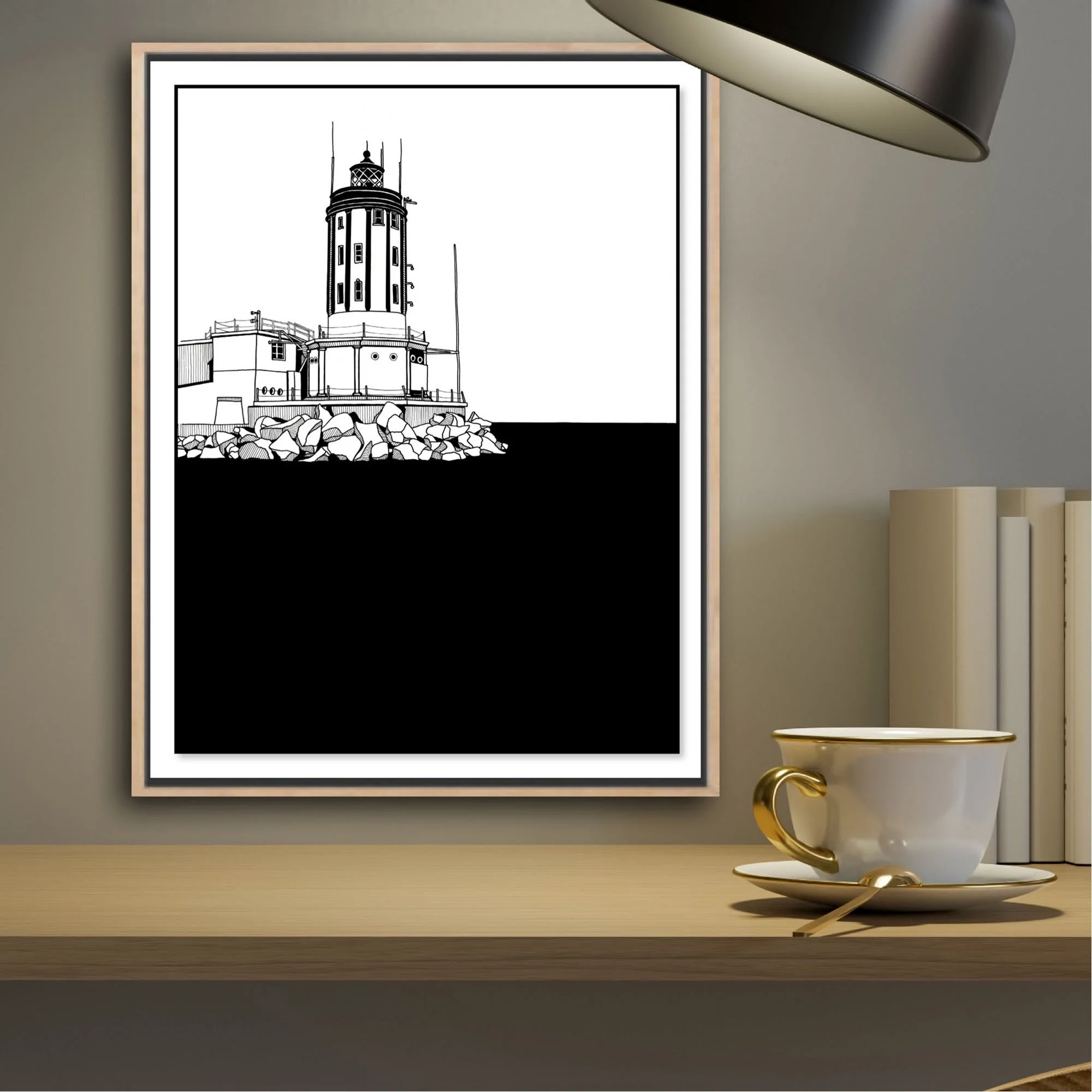 Angels Gate Lighthouse • Pen & ink on • illustration board • 11” x 15” • 1969